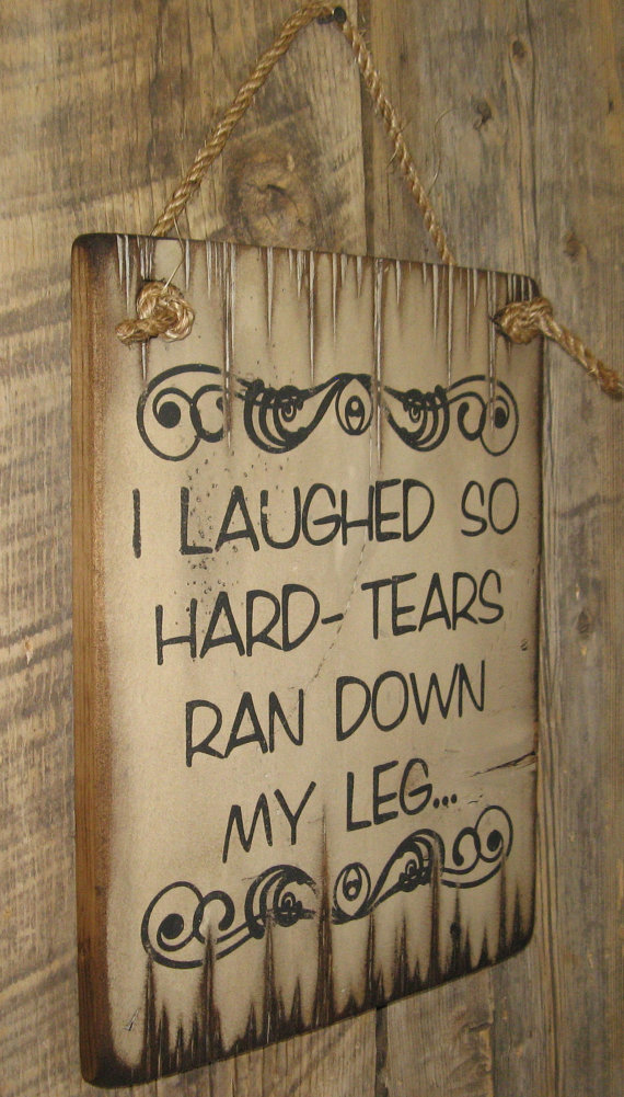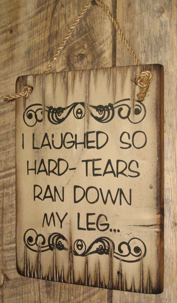 I Laughed So Hard-Tears Ran Down My Legs! This sign cracks me up, its a good explanation of what women and girls do if things get a little too funny This white background sign measures 11x14 and comes with the grass rope hanger for easy hanging. Handcrafted with pride!!
