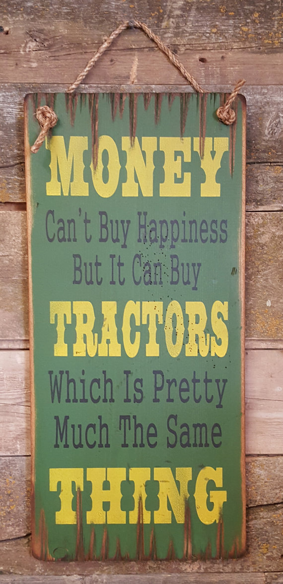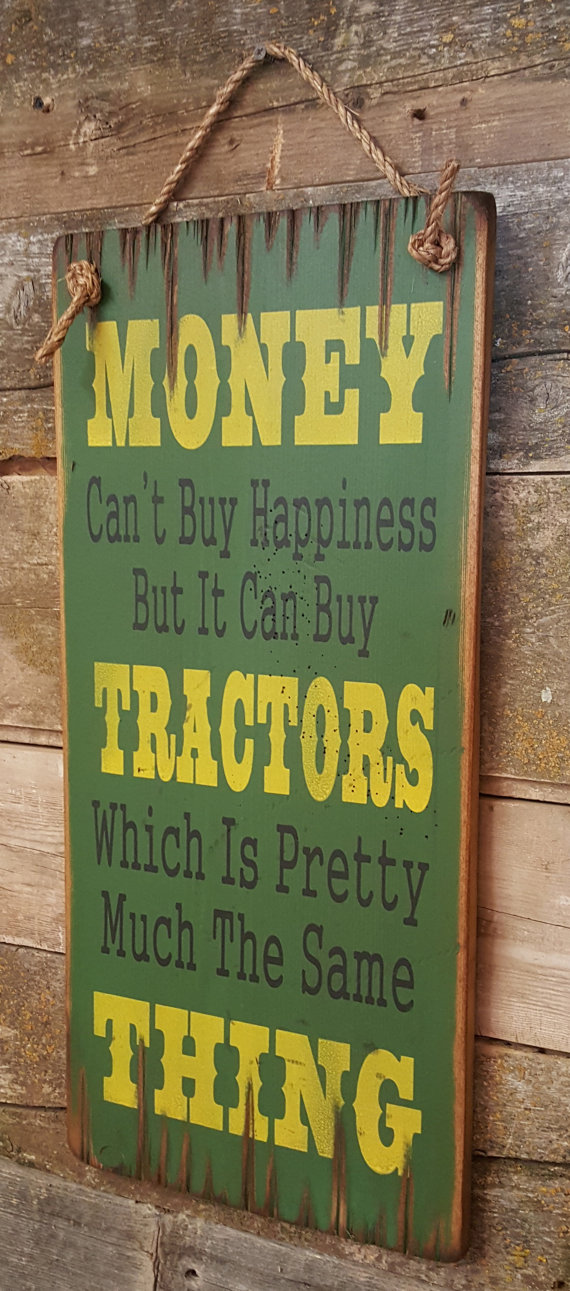 Money Can't Buy Happiness But It Can Buy Tractors Which Is Pretty Much The Same Thing. This sign is purposely designed for the "John Deere" owners of the world